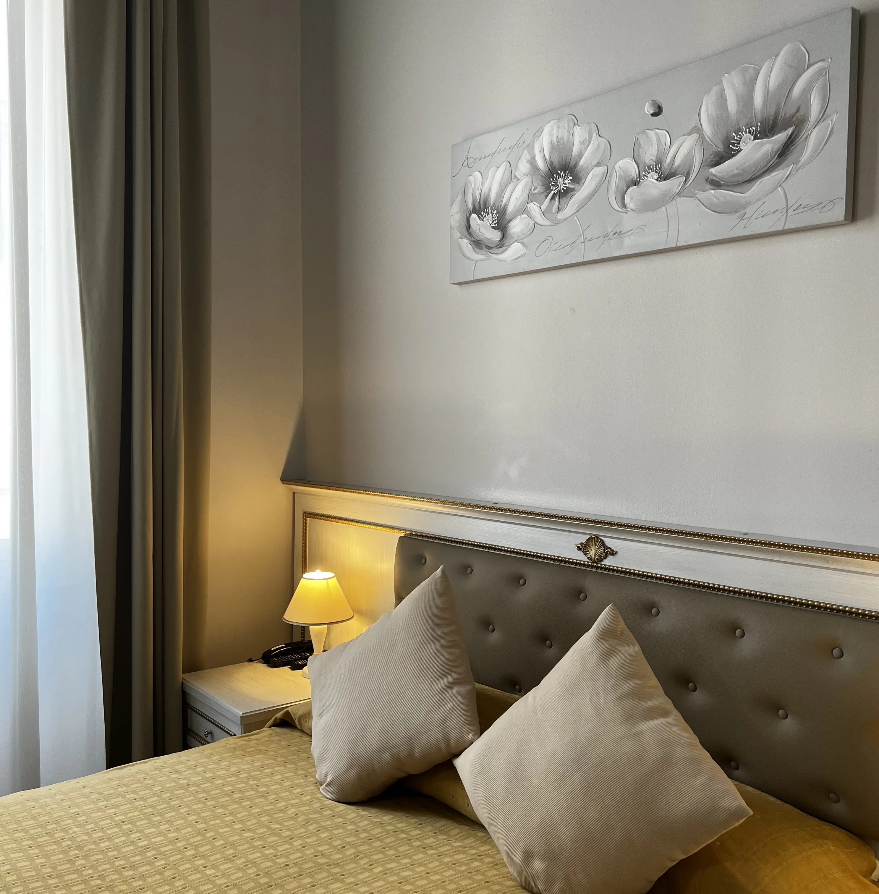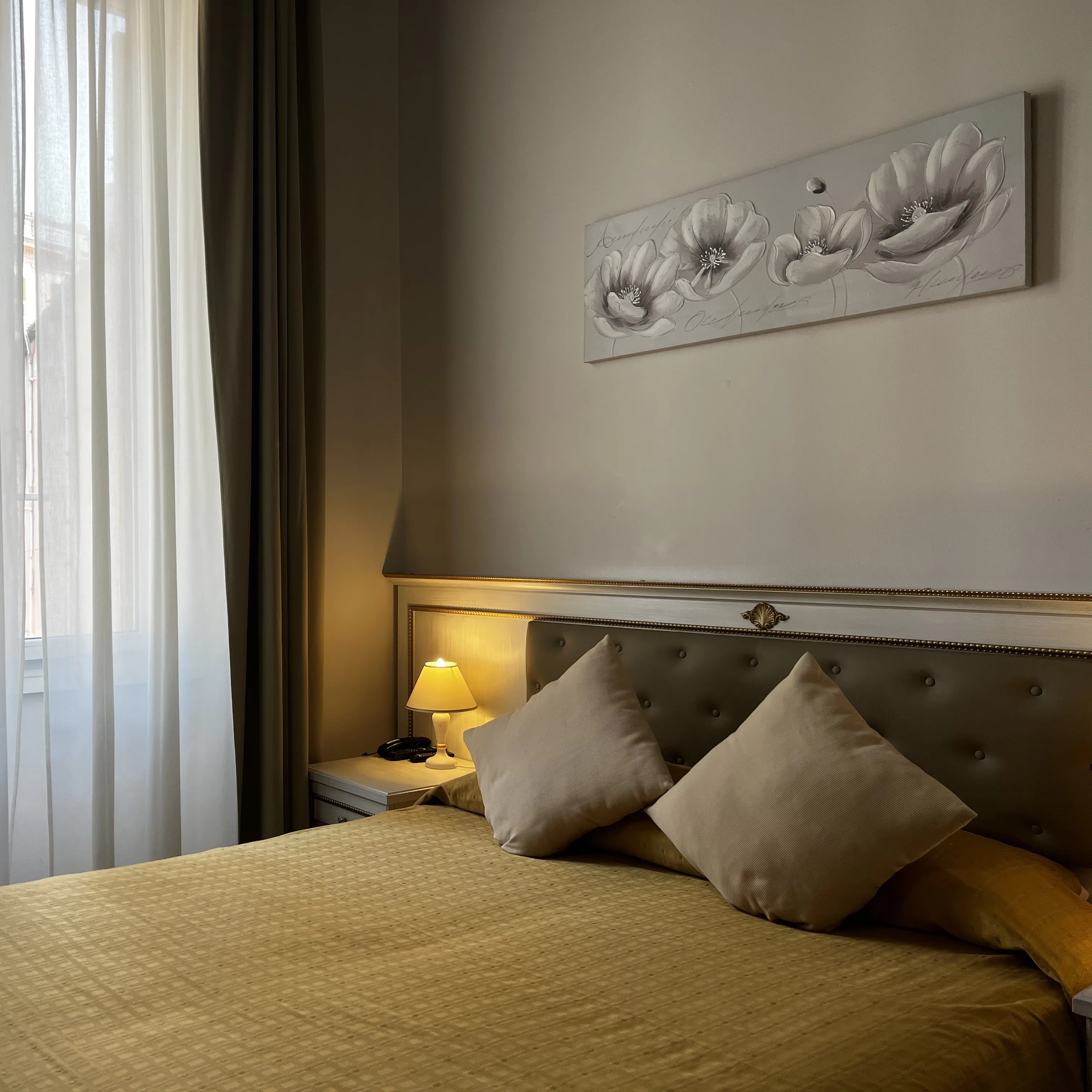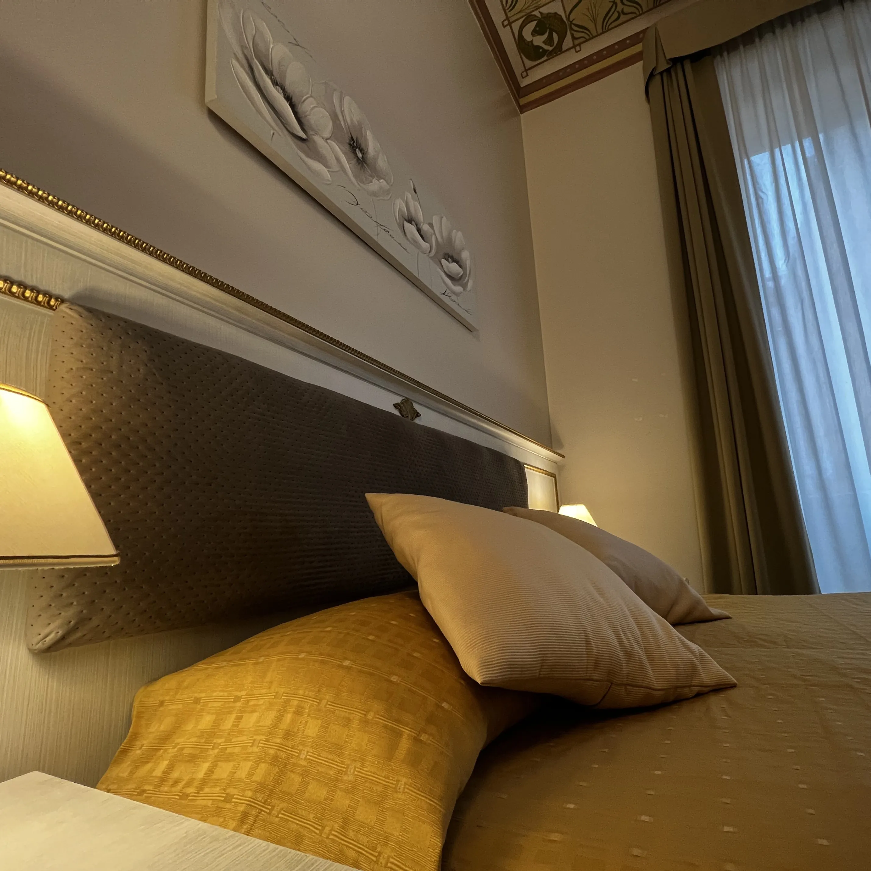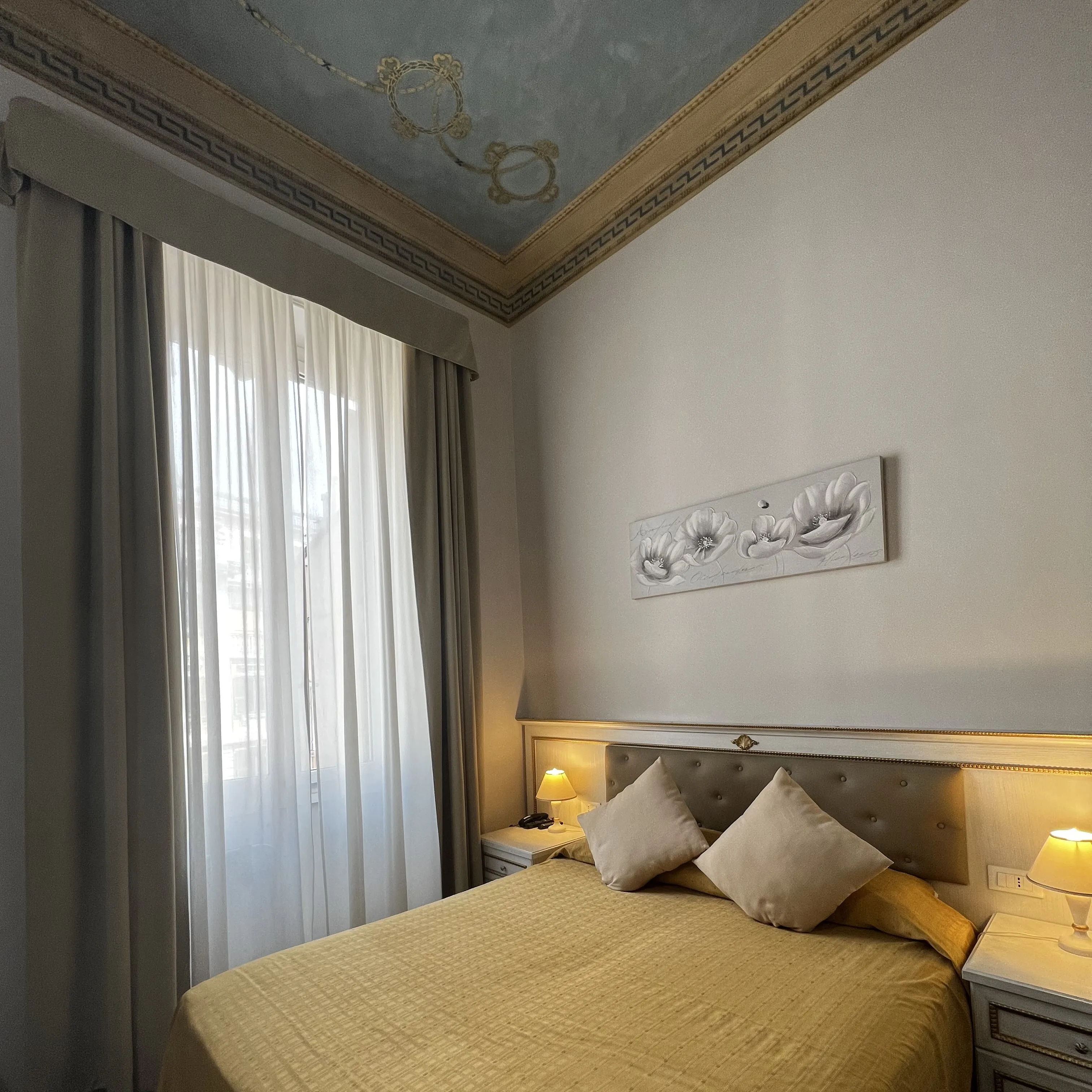 La chambre Double Standard avec son intérieur élégant correspond parfaitement au style classique de l'hôtel. La chambre offre une vue magnifique sur la rue piétonne San Vincenzo - l'un des lieux de promenade préférés. La chambre Double Standard est équipée de un lit double ou deux lits simples.Sur demande, il est possible de rajouter un lit bébé moyennant un supplément.Il est possible de loger une ou deux personnes, ainsi qu'un enfant si besoin.La superficie de la chambre est de 15 m².