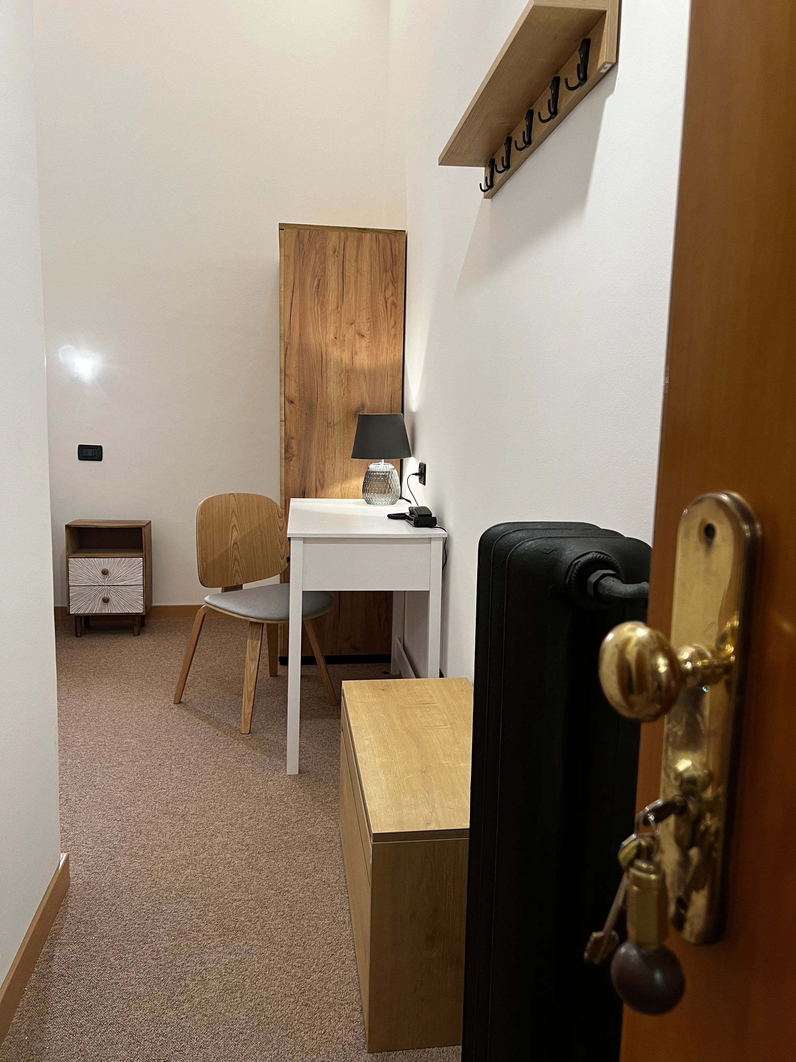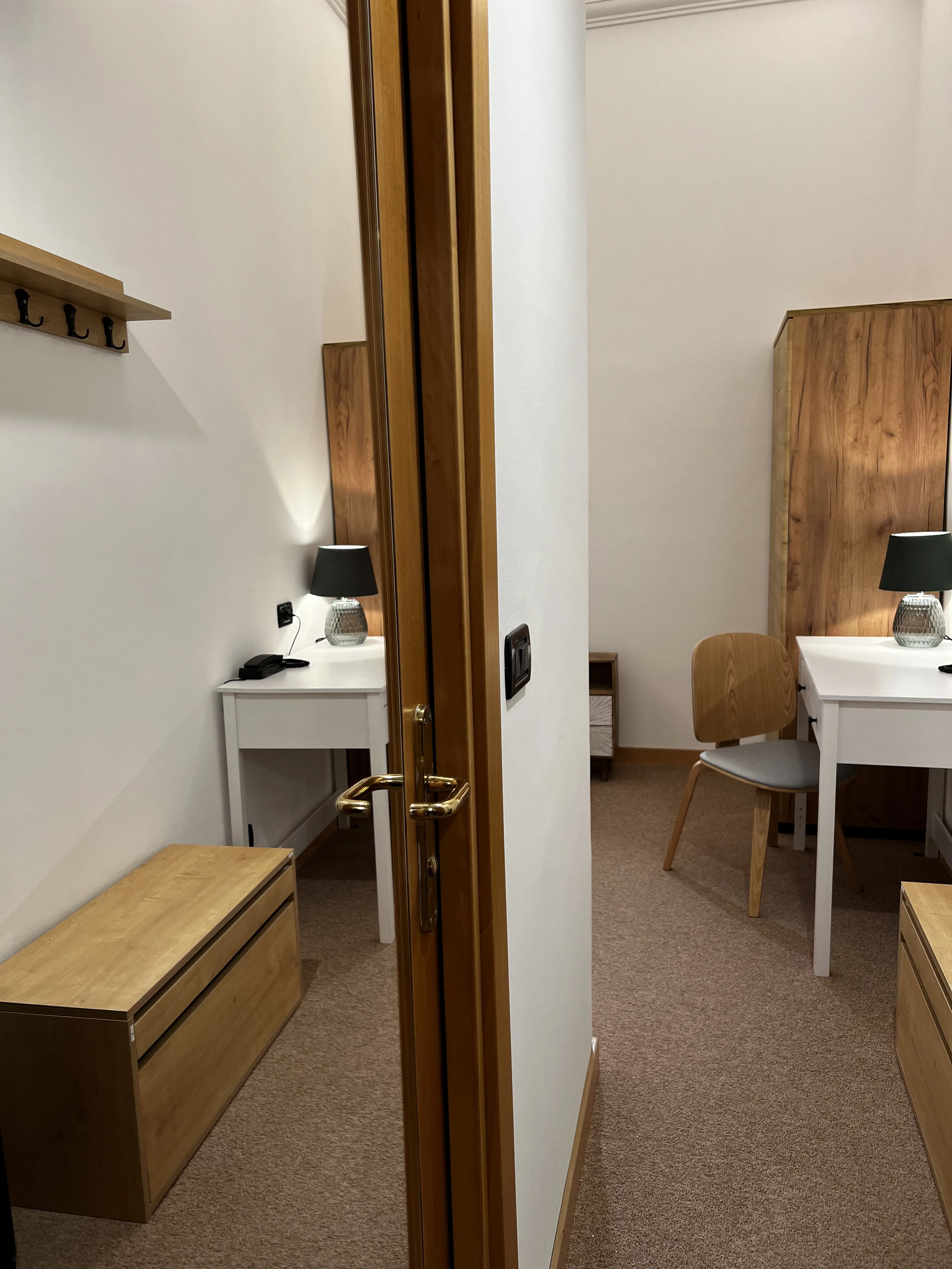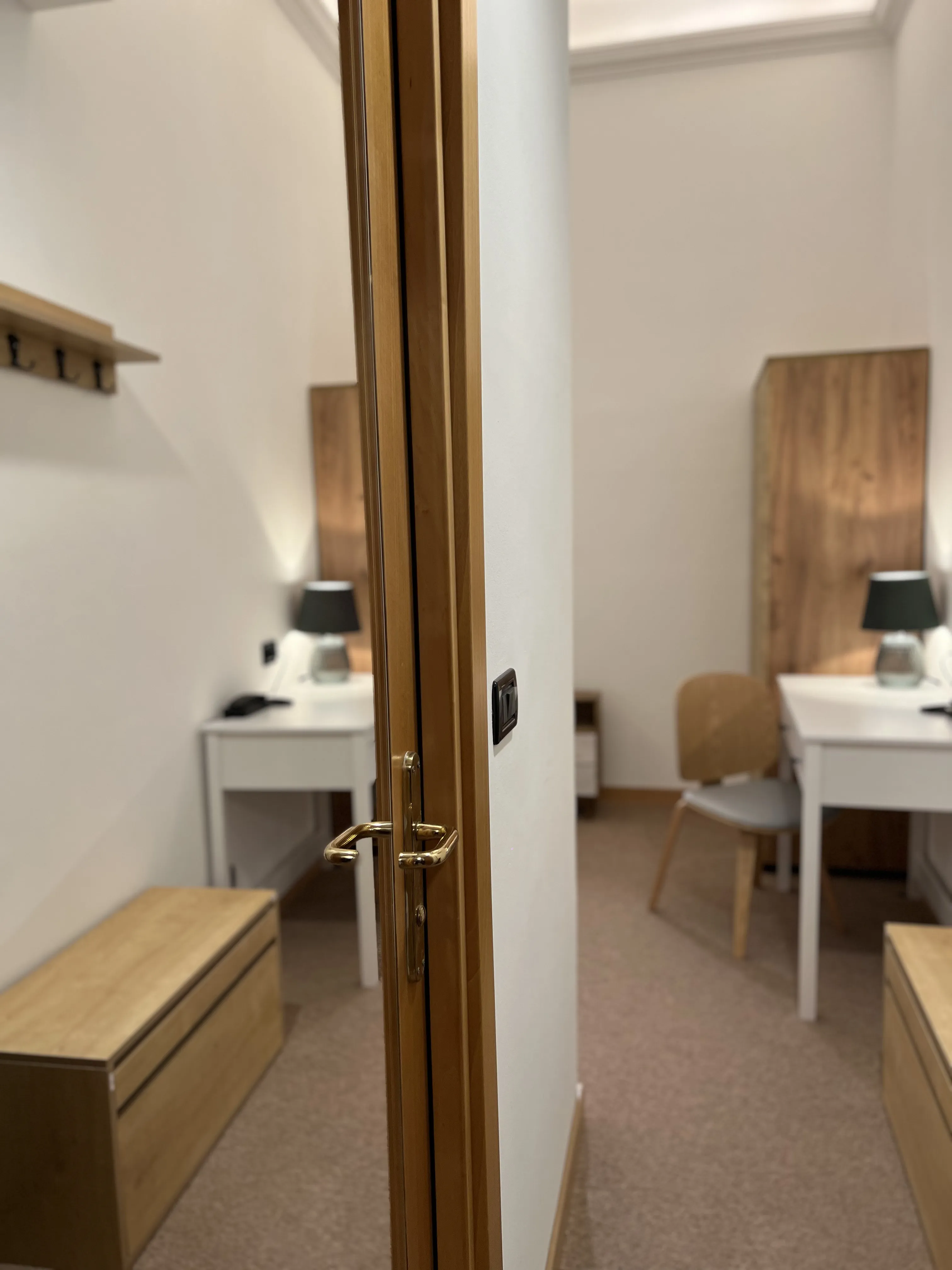 Una camera classica dagli interni raffinati e dotata di uno o due letti. Le finestre si affacciano sul cortile, quindi non sarete disturbati dai rumori della strada. La camera dispone di una scrivania e di un bagno con doccia, WC e bidet. Una camera doppia comprende anche l'uso singola. La superficie della camera è di 11 m².